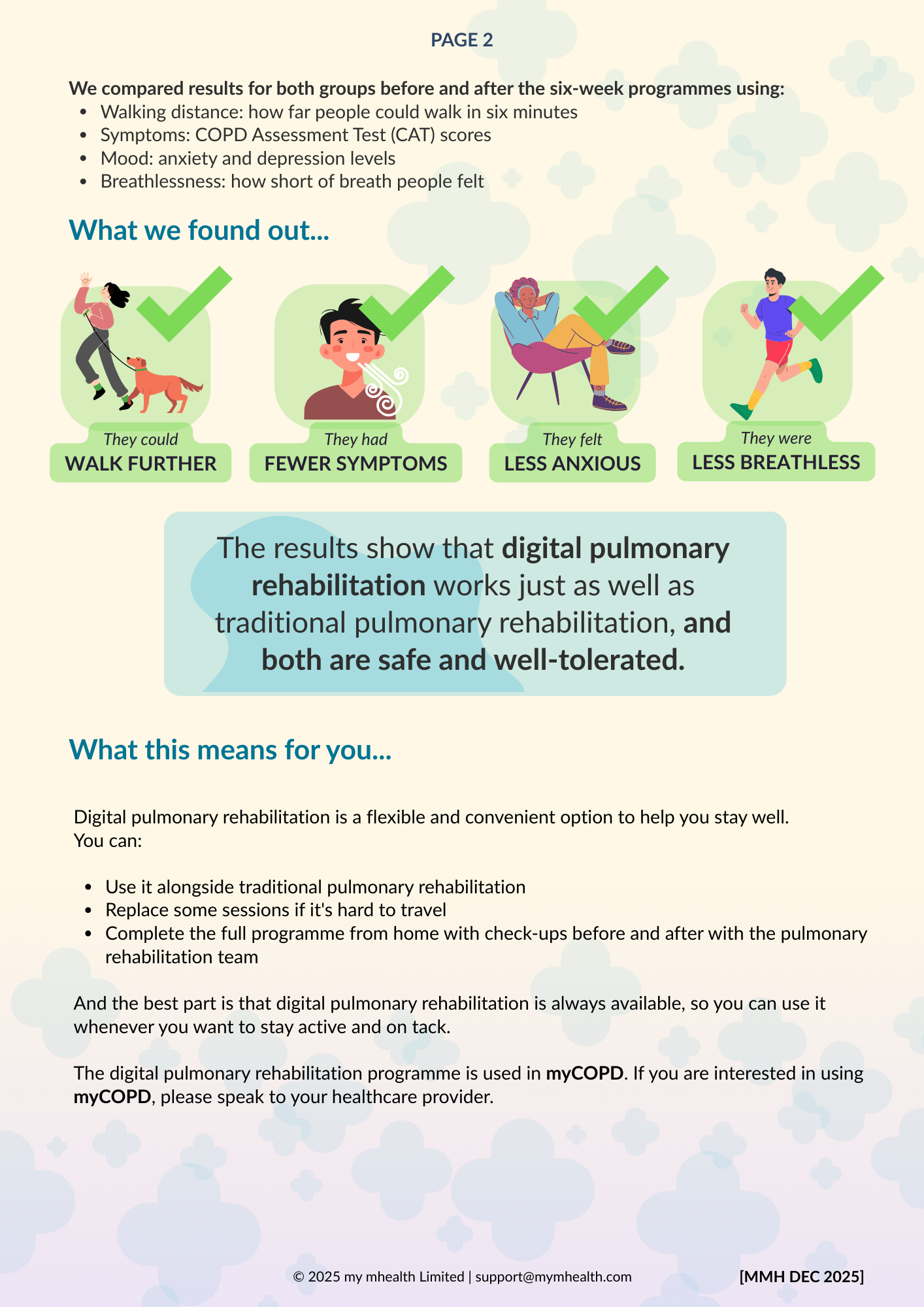A new partnership between leading digital health innovators, my mhealth and Patients Know Best (PKB) means shared NHS customers can streamline the delivery of their digital care tools, making it easier to empower patients to manage their health effectively. The collaboration brings together my mhealth’s award-winning self-management platforms with PKB’s personal health record solution, which is already embedded within the NHS App. “At the heart of this partnership is the patient,” said Dr. David Pettigrew, CEO of my mhealth . “By aligning our platforms, we’re enabling people to take greater control of their health while supporting clinicians with joined-up, efficient care pathways. It’s a significant step towards the NHS’s vision of a single ‘front door’ for digital health.” Key Benefits for Patients and the NHS: ● One seamless journey: Patients and clinicians benefit from a more unified experience across apps and services. ● Better outcomes through joined-up care: Shared access to data empowers more personalised and timely interventions. ● Greater access to services: Patients can engage with support tools and resources anytime, anywhere. ● Reduced clinical workload: Digitally enhanced care pathways streamline processes and free up clinical time. ● Scalable long-term condition support: Proven tools for managing COPD, asthma, diabetes, and more, integrated with national systems. ● Patient empowerment: Enabling people to be active participants in their health journey. This partnership also honours the early vision of digital health pioneer Dr Warner Slack, who said in the 1970s: “I hoped that the computer would help the doctor in the care of the patient. And in the back of my mind was the idea that the computer might actually help patients to help themselves with their medical problems.” Today , that vision is becoming reality - placing digital tools directly in the hands of patients and enabling a more connected, compassionate, and sustainable NHS. About my mhealth my mhealth provides evidence-based digital therapeutics for patients with long-term conditions including COPD, asthma, diabetes, and heart disease. Trusted by NHS organisations across the UK, their platforms deliver scalable self-management support and remote monitoring tools that improve outcomes and reduce healthcare burden. About Patients Know Best Patients Know Best is the World’s largest Personal Health Record (PHR) and patient engagement platform, integrating data feeds from over 550 health organisations and providers. The system connects information from GPs, hospitals, social and mental health care providers, to create a single, unified copy of patient data. Everything from appointments and letters to test results, care plans, real-time monitoring data and discharge summaries, as well as the patient’s own data, are all available in one patient record, enabling patients and healthcare professionals to access up-to-date health information anytime, anywhere. In the UK, the platform serves over 5 million patients, registering 100,000+ patients and releasing over 20 million test results a month. PKB integrates with the NHS App to provide a single front door for patients to access their information.